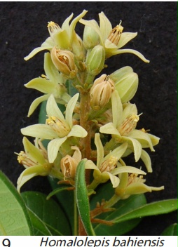 | Características: Árvore de pequeno porte, 2 a 6 metros, copa densa. Folhas simples, lisas, nervuras marcadas. Flores esverdeadas com cheiro adocicado (a foto da flor foi retirada da Internet - site Fieldmuseum). Fruto ovalado, de cor creme quando maduro,com saliências, parece um pouco com lichia, uma única semente envolta em polpa amarela. A polpa tem sabor extremamente amargo. Ver referências nos links abaixo | ||