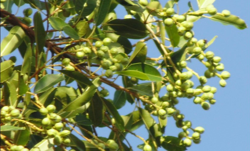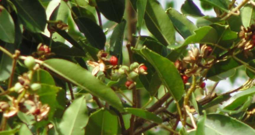 DESCONHECIDA 02 - PIMENTA, PAU DE LEITE Provavelmente Sapium haematospermum, familia Euphorbiaceae. Árvore de grande porte, 20 metros, nas proximidades de Ipatinga, próximo a Vital Engenharia. Apresenta frutos em Fevereiro. Exuda latex branco. Muito atrativo para pássaros.