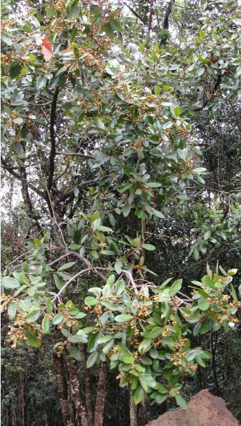 4- SALACIA ou SAPUTÁ Provavelmente Salacia (Nomes populares Saputá, Bacupari). Família Hippocrataceae. No livro "Árvores brasileiras" Volume 2 aparece a Salacia ellipta, mas esta parece um pouco diferente. Folhas com bordas levemente serrilhadas. Duas sementes por fruto. Polpa doce, bem amarelada.