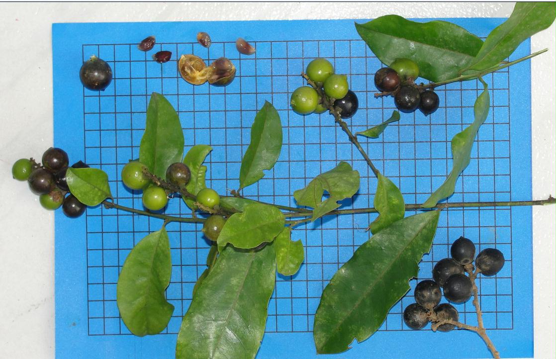| Época de floração e frutificação: Floresce em Setembro, frutifica em Dezembro. Os frutos maduros se perdem rapidamente, mas permanecem agarrados no ramo, já murchos ou secos por muito tempo. | ||
