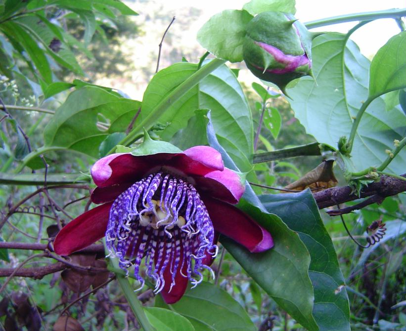 | Características: Não se trata de árvore, e sim de cipó. Ocorre sobre arvores e arbustos, e até de forma rasteira em pastos, sobre o capim. Flor roxa, folhas simples e lisas. Fruto esférico com leves sulcos longitudinais. Quando maduro fica totalmente amarelo. Casca macia e mais espessa. Polpa muito doce. | ||